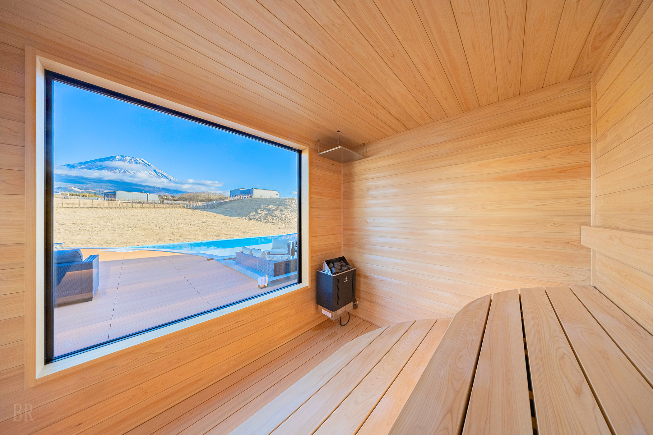 每間客房皆設有引自富士山麓高濃度含釩礦泉的客房風呂及私人桑拿,從所有房型均可眺望富士山。
