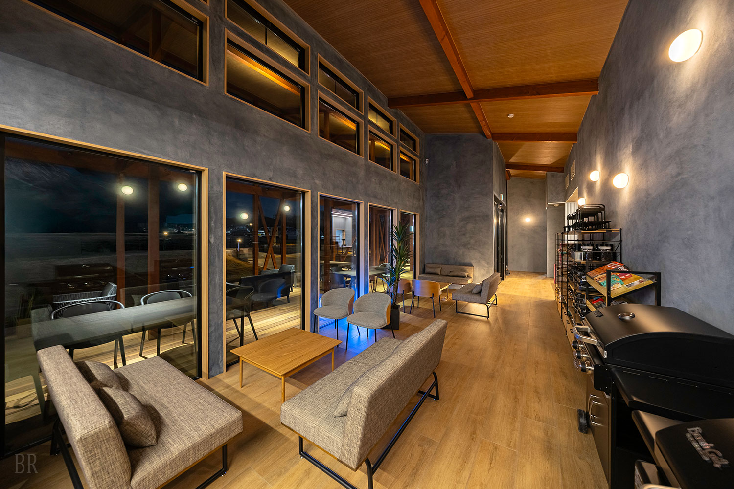管理棟內設有飲品無限暢飲的酒吧區域,住客可自由使用,無需額外收費。